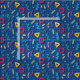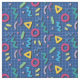 Rainbow colourful chequered retro vintage 80s memphis fashion style pattern on a blue background.