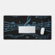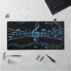 Blue music notes spread across the surface of this unique desk mat. The notes are placed on a dramatic black background. Your two letter monogram is also in blue at the centre bottom.