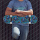 Blues and Greens abound on this abstract Tiled Peacock Skateboard