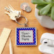 Blue n White Polka Dots Red Trim Photo Frame Key Ring