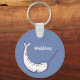 Keep your keys secure with this cute narwhal keychain or use this keyring as a backpack dangler or purse accessory. The keychain has a denim blue background and a fill-in-the-blank field so you can easily add your own name or short message. Makes a great small personalised gift or party favour. This keychain coordinates with other items in our Happy Narwhal collection.