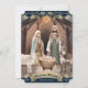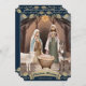 Custom blue nativity scene Christmas cards. Easily personalise this religious Christmas card with your family name, and text. The background and text can be changed to any colour.