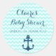 Baby shower nautical theme thank you favour tag sticker in elegant and fun dark navy blue, turquoise aqua blue and white chevron zigzags pattern with ship's anchor. Customisable with your own text, contact us for a colour change. The perfect way to decorate your baby shower favours and thank your guests for being a part of your special day.