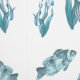 Blue Nautical Beach Coastal Fish & Shells Nursery Wallpaper