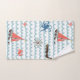 Modern, stylish, cute and fun towel set featuring nautical illustrations of sailboats, octopus, crabs, starfish and other nautical accents.