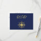 Blue nautical wedding RSVP cards with gold compass and customisable text