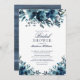 Blue Navy Blue Flowers Rustic Bridal Shower Invitation