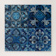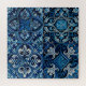 Blue navy vintage mosaic tile Puzzle. Abstract floral ceramic azulejo pattern in spanish or moroccan style.