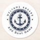 Blue Navy Nautical Anchor yacht club boat marina Round Paper Coaster