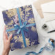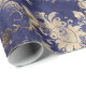 Blue Navy Sepia Gold Flower Graphite Grungy Shabby Wrapping Paper