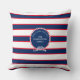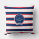 Blue Navy White Red Nautical Monogram Stripe Outdo Cushion