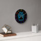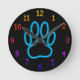 Blue Neon Dog Paw Print With Numbers Round Clock