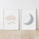 Add a finishing touch to your little one's space with this set of 2 watercolor cloud and moon prints.