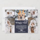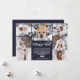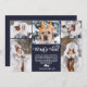 A modern and elegant simple New year in review greeting card with 5 photos grid collage, and a modern font. All the blue and white colours can be edited with a white holy berry.