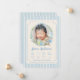 Blue Newborn Birth Photo Baby Boy Announcement.