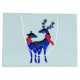Blue Nordic Christmas Reindeer Pair Large Gift Bag