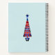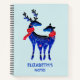 Personalised spiral journal with a light greenish blue background. Illustrated with a pair of blue scandinavian deer wearing red scarves. With decorative markings on their bodies. The back cover has an image of a nordic style Christmas tree in blue and red with a star on top.