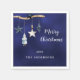 A navy blue background, the blue colour is uneven. Decorated with pine springs and cones. Personalise and add your family name. Text: Merry Christmas.