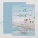 Set the tone for a relaxed yet elegant seaside celebration with this On the Beach wedding invitation. Featuring soft ocean blues, gentle coastal hues, and a serene beachscape with palm trees and calm waters, this design captures the effortless romance of a destination or waterfront wedding.