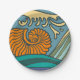 Blue Ocean Waves Nautilus Seashell Pattern Nouveau Paper Plate