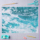 Crashing blue ocean waves creating natures patterns. Summer beach vibes in Hawaii, the Mediterranean and other seaside destinations. Perfect home decor design or gift for a special occasion.