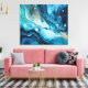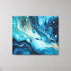 Blue Ocean with Gold Swirl Acrylic Paint Pour Canvas Print