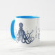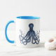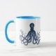 Stylish personalised coffee mug with vintage artwork of an octopus done in blue, on both sides of the mug. Personalise the blue text, in the middle, to read anything you want. Great mug for home or office.