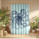 Blue octopus nautical illustration on light green shower curtain