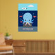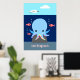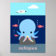 Cute blue octopus with three orange fish and a seagull flying overhead. Says "octopus" but you can change the wording.
