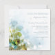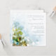 This 5.25x5.25 square stylish vintage chic wedding invite has a soft faded blue background with some birds flying around. On the left, there is a beautiful soft blue, white, and olive green foliage leaves design. At the top right, you can easily customise this with your wedding ceremony information. These warm colours would be great for a fall or winter wedding, but could be used anytime of the year!