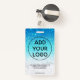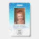 Modern mermaid blue ombre glitter white marble logo employee photo pass, add your photo, name, title, company logo.