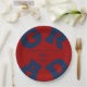 GRAD in bold blue lettering curves around the edges of these dark red graduation party paper plates - available in 2 sizes. Congratulations above the name of your graduate and the Class of below. The perfect addition to your table decor for upcoming grad parties. **TIP: Click on CUSTOMIZE button; click on COLOR box on top right; enter your color hex code in the #xxxxxx box to match your school colors. SEE ENTIRE COLLECTION of pre-done color combinations and more in our store.