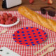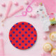 Blue On Red Polka Dots Pattern Design Paper Plate