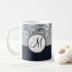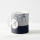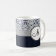 Blue on Silver Damask w Navy Stripes and Monogram Coffee Mug
