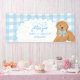 Customize it with your child’s name to make it uniquely theirs. This banner is ideal for a boy’s first birthday, puppy themed party, or blue gingham farmhouse celebration. Hang it behind your dessert table, at the entrance, or as a photo backdrop for a warm, coordinated look.