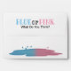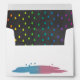 The inside flap of the envelope features a black, chalkboard style background with falling rainbow-coloured raindrops. which create a blue and pink puddle at the bottom of the backside of the envelope. The top back flap includes the text, "Blue or Pink - What Do You Think?." Fits invites up to 5 x 7 inches.