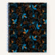 Blue and Orange Abstract Floral on Black Background Spiral Notebook by Gerson Ramos.
