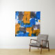 Blue, orange, and gray abstract art tapestry