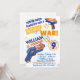Nerf War 9th Birthday Invitation for boys. Gear up for an energetic celebration with this bold blue and orange theme. The layout displays a fun foam blaster battle motif, ideal for a massive ninth birthday bash. It features a large number nine inside a target, perfect for active kids who love team games. The style uses vibrant colors to create an exciting atmosphere. Customize the details for your specific time and location to ensure a memorable day for the whole squad.