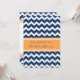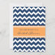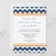 Bridal Shower invitations in elegant orange, dark navy blue and white retro and casual chevron zigzags stripes pattern, chic and feminine, customisable with your shower details. Also available in thank you cards and invitations for the bridal party.