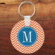 Blue & Orange Chevron Pattern with Monogram Key Ring