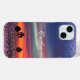 Enjoy nature’s beauty whenever you use this stunning, inspirational photo personalised name cell phone case of a gorgeous, red orange and blue cloud sunset with palm trees, tipped with tiny, sparkly turquoise, purple, pink and gold, ombre confetti dots. Makes a great gift for someone special!