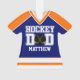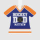 Fun, personalised hockey dad jersey design. Personalise this blue and orange jersey with the name of your favourite hockey dad!