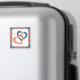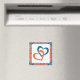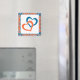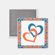 This favour magnet is decorated with overlapping hearts in the colours Coast Guard blue orange damask bars superimposed on a white background.