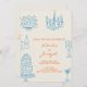 Blue Orange Drawn Whimsical All In One Wedding Invitation