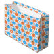 Blue Orange Fall Pumpkin Leaves Pattern Large Gift Bag
