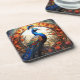 Blue Orange Floral Autumn Peacock Stained Glass Coaster