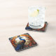 These drink coasters feature an image of a beautiful and brightly coloured peacock. Colours used include blue, gold, orange, brown, white, and green. A stained glass overlay effect gives added interest to the design. A beautiful, majestic wildlife image for your home or office.