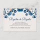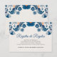 This Blue Orange Floral Elegant Fiesta Spanish Wedding Enclosure Card design features an intricate floral pattern that wraps around the border, showcasing delicate blue and orange flowers interwoven with curling vines and leaves. The color palette, consisting mainly of soft blues with touches of warm orange, creates a harmonious contrast, evoking a hand-painted, artisanal quality. The symmetry of the design along with the detailed floral motifs adds a traditional, handcrafted charm, reminiscent of Mexican folk art.