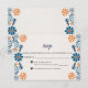 This Blue Orange Floral Elegant Fiesta Spanish Wedding RSVP Card design features an intricate floral pattern that wraps around the border, showcasing delicate blue and orange flowers interwoven with curling vines and leaves. The color palette, consisting mainly of soft blues with touches of warm orange, creates a harmonious contrast, evoking a hand-painted, artisanal quality. The symmetry of the design along with the detailed floral motifs adds a traditional, handcrafted charm, reminiscent of Mexican folk art.